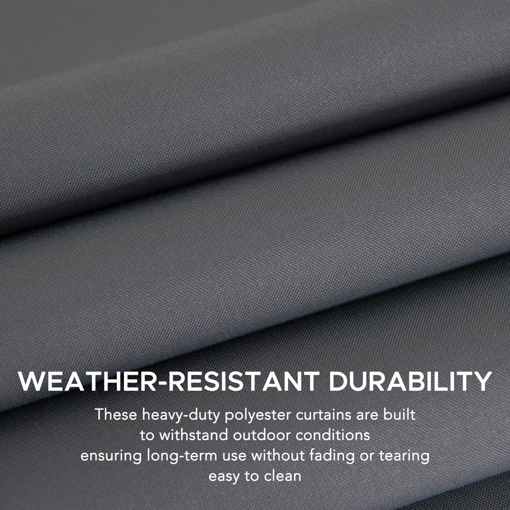 Enhance the look and increase the functionality of your space with the weather-resistant curtains. Whether you are looking to create a more private setting away from prying eyes, trying to block out some unwanted sun, or simply keeping insects away this is your solution. The curtains are easily installed with included hardware to the dual curtain/netting rails. Curtains can be closed and secured with quality zippers. When not in use simply use the curtain ties to keep everything neatly contained and out of the way. Note: The gazebo is not included. Currently, we’re only able to deliver to United Kingdom mainland.