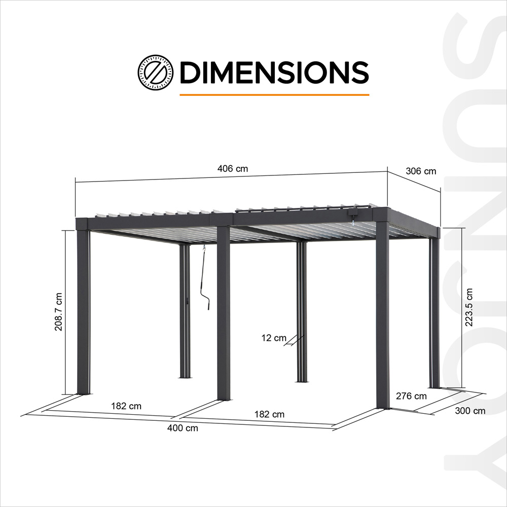 Have you ever wanted to relax outside in your backyard, but it was too hot in the direct sun to enjoy being outside? This Sunjoy 3 x 4m outdoor aluminium louvred pergola is your answer. Finished in an anthracite colour, the high-end adjustable louvred roof is made of an aluminium structure with adjustable insulated aluminium panels that offer outstanding comfort in cold and hot seasons. The louvred pergola roof design makes it adjustable with an angle of 0° to 105° to withstand greater snow loads and strong winds. It is a great addition to your patio, deck, or backyard all year round. With straightforward, easy-to-follow assembly instructions, you’ll be relaxing in your favourite new outdoor living space in no time.