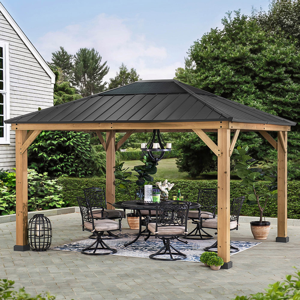 Sunjoy Bruri 3.93 x 3.35m Anthracite Cedar Wood Gazebo