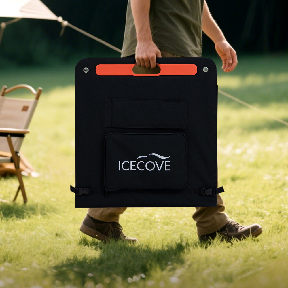 Harness the sun’s energy anywhere with this Sunjoy Folding Solar Panel 226W. Designed for high efficiency, it features four adjustable kickstands optimize sun exposure. Lightweight and portable, it folds to 630 × 680 × 50mm (under 10kg) and has magnetic closure and carry handle for added convenience. It’s made using rugged and durable weather-resistant materials for outdoor endurance. Perfect for charging your air conditioner and other devices, it comes complete with a storage bag for tangle-free transport. Pairs seamlessly with IceCove battery systems.