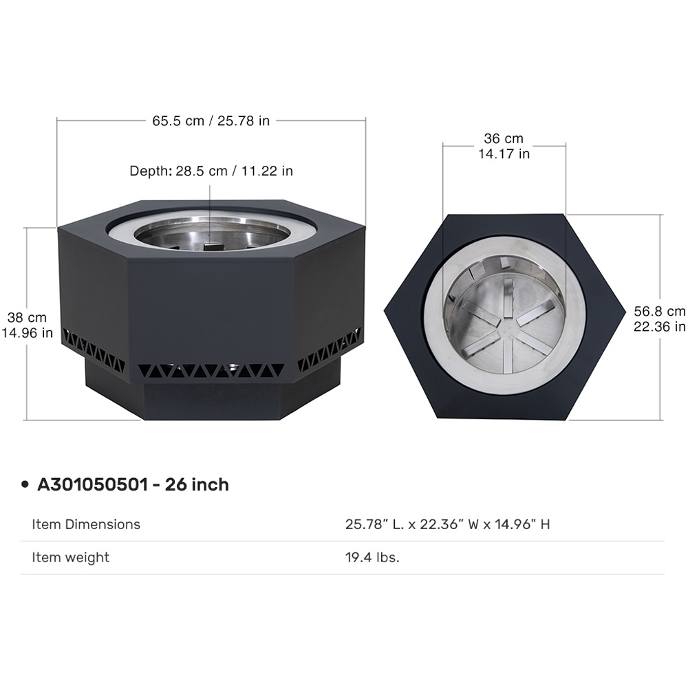 Crafted with premium rust-proof stainless steel, the Sunjoy Lawrence Smokeless Wood Burning Fire Pit ensures exceptional durability and superior heating performance in any environment. Experience the magic of twirling flames with this innovative airflow technology that creates captivating twists and spirals without the smoke. Weighing only 9.3kg, this lightweight and portable fire pit is ready for all your outdoor adventures. The removable liner makes maintenance a breeze, while the provided accessories, including a fire poker, guarantee convenience and long-lasting protection. Elevate your outdoor experience today! Note: Please use dry, pure wood or pellet fuel to achieve better smokeless results.