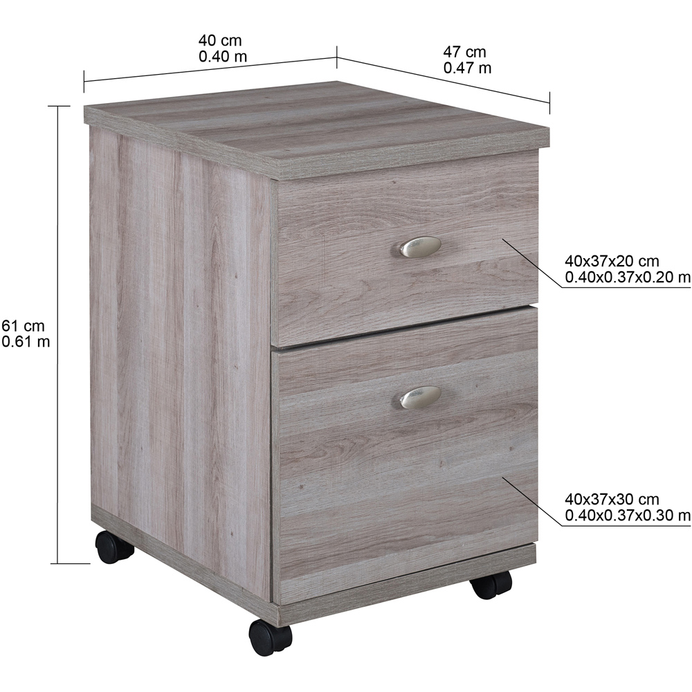 Treat yourself to an organized space at home. With great contemporary design this two-drawer mobile file cabinet will not only allow for lots of storage it will keep clutter accessible and out-of-sight. The Driftwood looking finish is durable and easily maintained. Assembly is quick and easy. Currently, we’re only able to deliver to United Kingdom mainland.