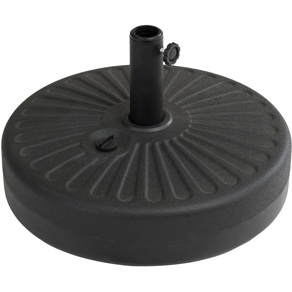 Instantly enhance any outdoor setting with this universal umbrella base by Sunjoy, the world’s leading maker of ready-to-assemble outdoor structures. Crafted from 100% HDPE, this classic umbrella base combines beauty and functionality, ensuring durability to fully support your patio umbrellas. Ideal for outdoor lounge chairs or seating areas, the black leather-like finish complements a wide variety of styles, including patios, backyards, gardens, decks, and poolsides. Simply fill it with water or sand to add weight and stability. Enjoy its robust design featuring a black powder-coated steel tube and a convenient tightening knob, compatible with 1.57 and 1.93 inch poles. Currently, we’re only able to deliver to United Kingdom mainland.