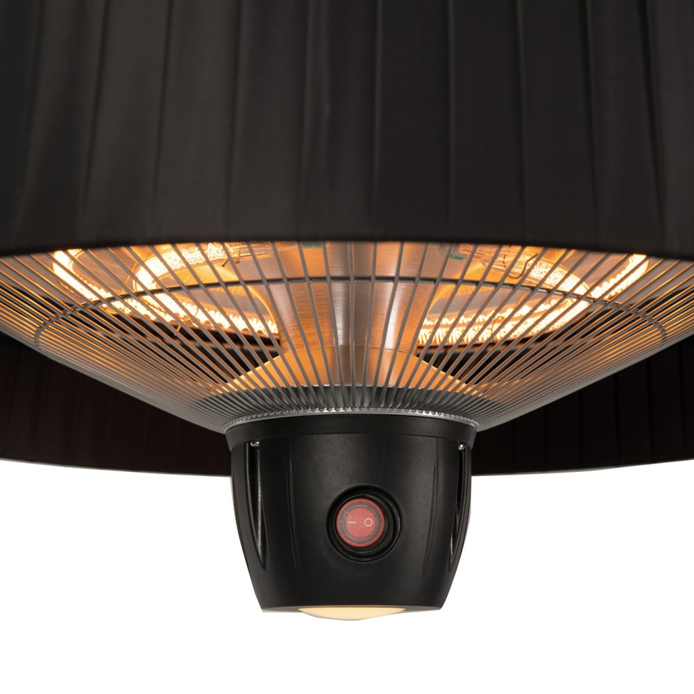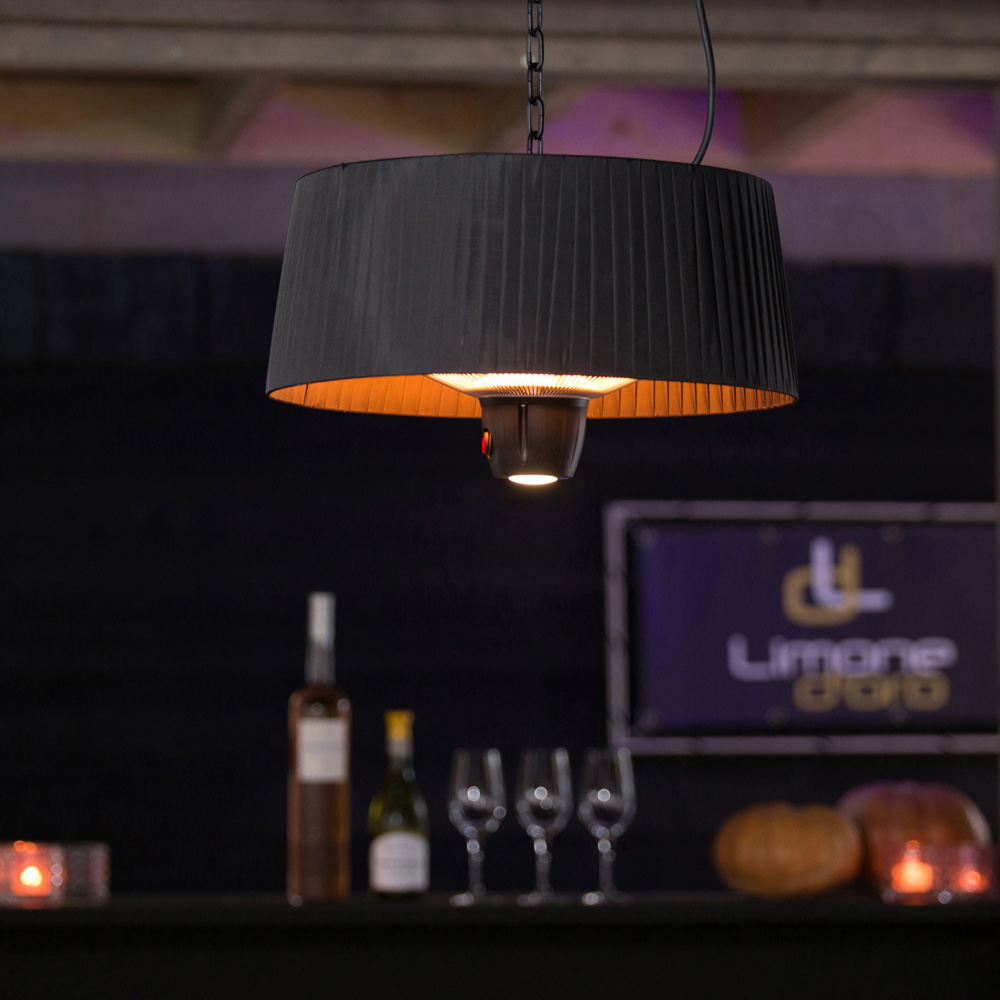 This stylish Artix heater from the Sunred Bright range offers you comfortable warmth with a remarkable design. For extending your interior outdoors just simply hang this black Artix halogen heater from your outdoor patio ceiling. You can adjust the heat to your own wishes: 600, 900 and 1.500 Watt. A big advantage is that the wind will not influence the spread of warmth, because the infrared halogen technology warms up your body from inside out. With the included chain, it is easy to put the heater underneath the porch. Besides the warmth, you can use the Artix as an outdoor light as well. Switch the 3-watt LED light on, even apart from the use of the halogen element. With the remote control, it is easy to make use of this terrace heater.
