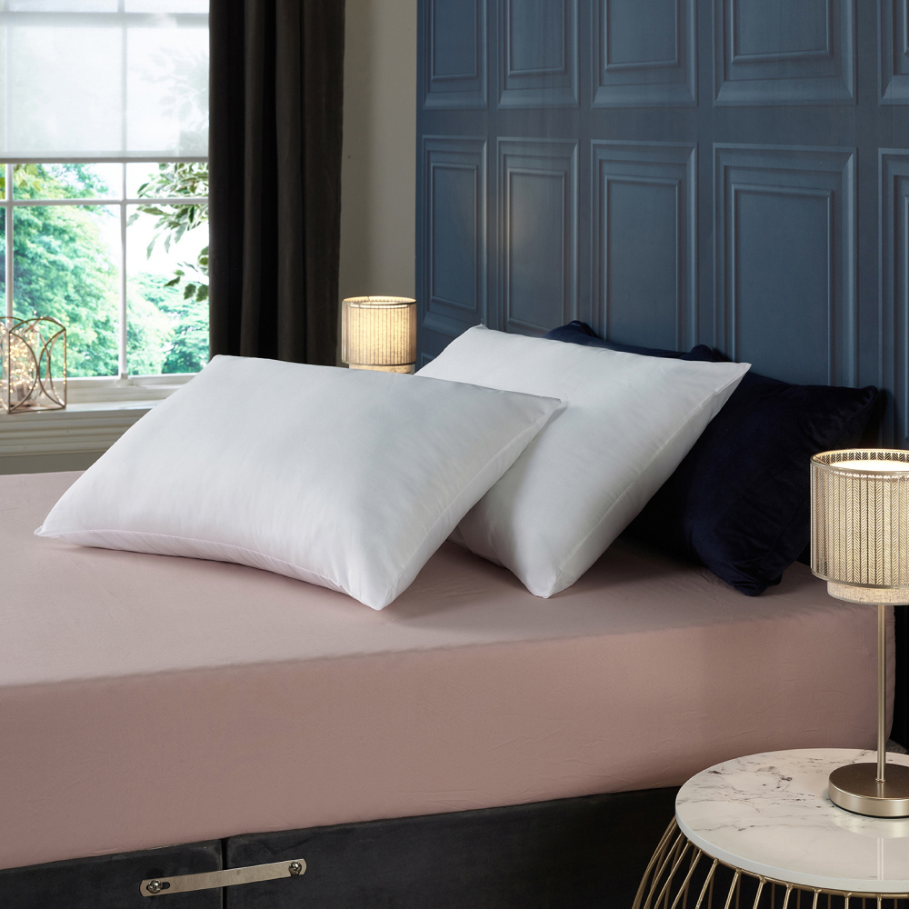 Add a soothing touch to your bedroom decor with the Downland White Superbounce Pillows 2 Pack. This pillow set is crafted using soft spiral hollowfibre filling for utmost comfort. These pillows boast 100% microfibre polyester covers with an aesthetic appearance and a soothing texture. These cosy pillows effortlessly blend with all types of contemporary and classic bedroom spaces. They are machine washable for easy maintenance.