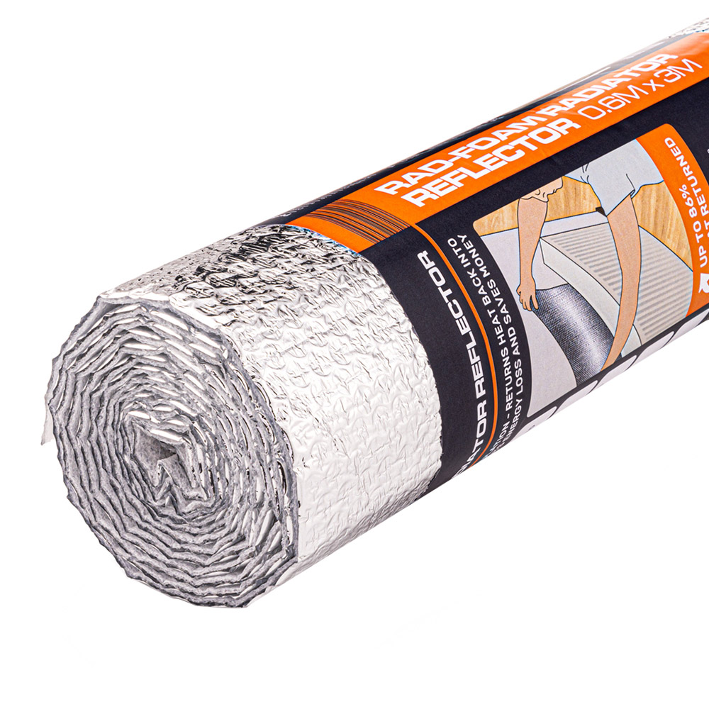 Prevent heat loss and reduce household energy bills with SuperFOIL Rad-Foam Radiator Reflector 0.6m x 3m and Pipe Insulation 80mm x 7.5m Set. Installed behind radiators - the reflector works by reflecting up to 86% of radiant energy away from the wall and back into the living space. It fits all radiator sizes and there's no need to remove your radiator from the wall. Pipe insulation protects pipes from both heat and cold. Suitable for use with any diameter of pipe - the thin profile allows installation in tight spaces. Easy to install - just cut to fit and secure.