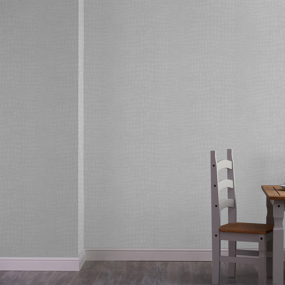 Make your space the real show-stopper with this Superfresco Easy Crocodile White Wallpaper. Designed to transform your living room, dining room or bedroom with a truly sensory experience, the textured wallpaper has a tactile design emulating the skin of a crocodile. The rich grey tone enhances the bold texture, and the embossed design raises the ‘scales’ of the pattern to catch the light. With its easy-to-hang feature, the washable wallpaper would be an ideal choice for modern interiors as the overall effect gives a shimmering, 3D look that reflects light from the surface. Application method: Paste the Wall. Design Match: Offset. Design Repeat: 64cm. Roll Length: 10m, Width: 52cm.