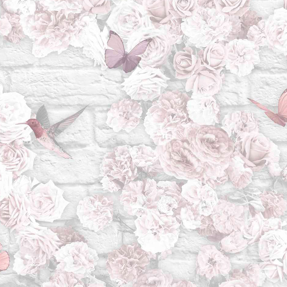 Add a beautiful touch to your home with this all-over Superfresco Easy Flower Pink Wallpaper design featuring an elegant repeat of florals on a backdrop of whitewashed brick. Complemented by hummingbirds, this beautiful print would look great as a feature wall or on all four walls. Paste the Wall. Design Match: Offset, Design Repeat: 64cm, Roll Length: 10.05m, Roll Width: 52cm.