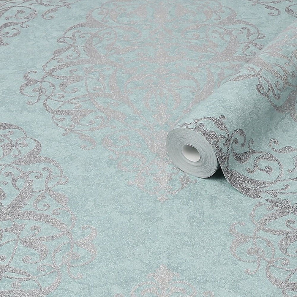 Let your walls make a bold statement with this Superfresco Easy Shiraz Teal Wallpaper. This wallpaper features silver shimmer details to bring a luxurious feel to any room. Designed for convenience, it features a paste-the-wall application, is washable for easy upkeep, and effectively conceals minor cracks and imperfections, ensuring a flawless finish.