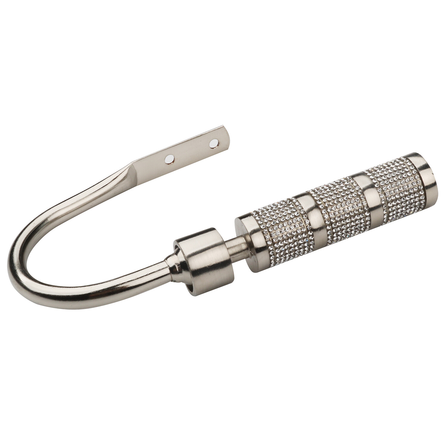 The Surat Holdbacks are a pair of lavish and elegant hooks that will aid in keeping your curtains open during the day as well as bringing a bejeweling shine to your home. The long cylindrical finial is studded with rows of diamantes which will glitter as natural sunlight falls over them, white the satin silver finish gives the holdbacks a gracefully vintage vibe.
