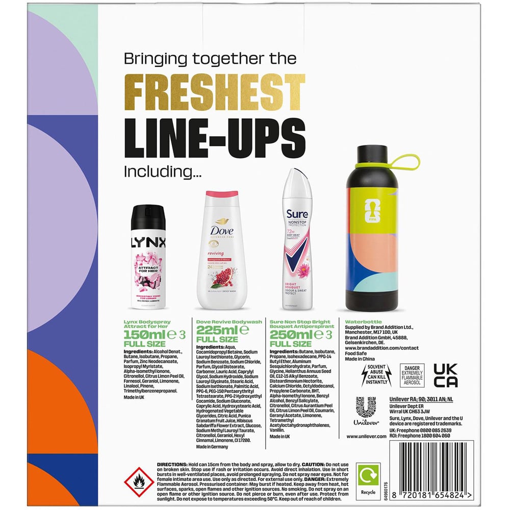 - Features Lynx and Sure bodyspray with Dove bodywash