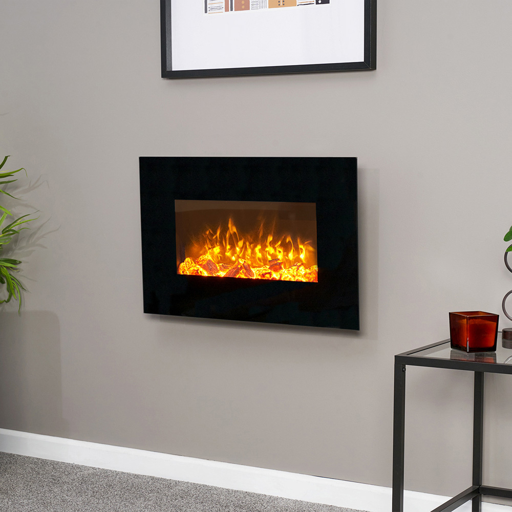 Sureflame Black Electric Wall Mounted Fireplace with Remote 26 inch