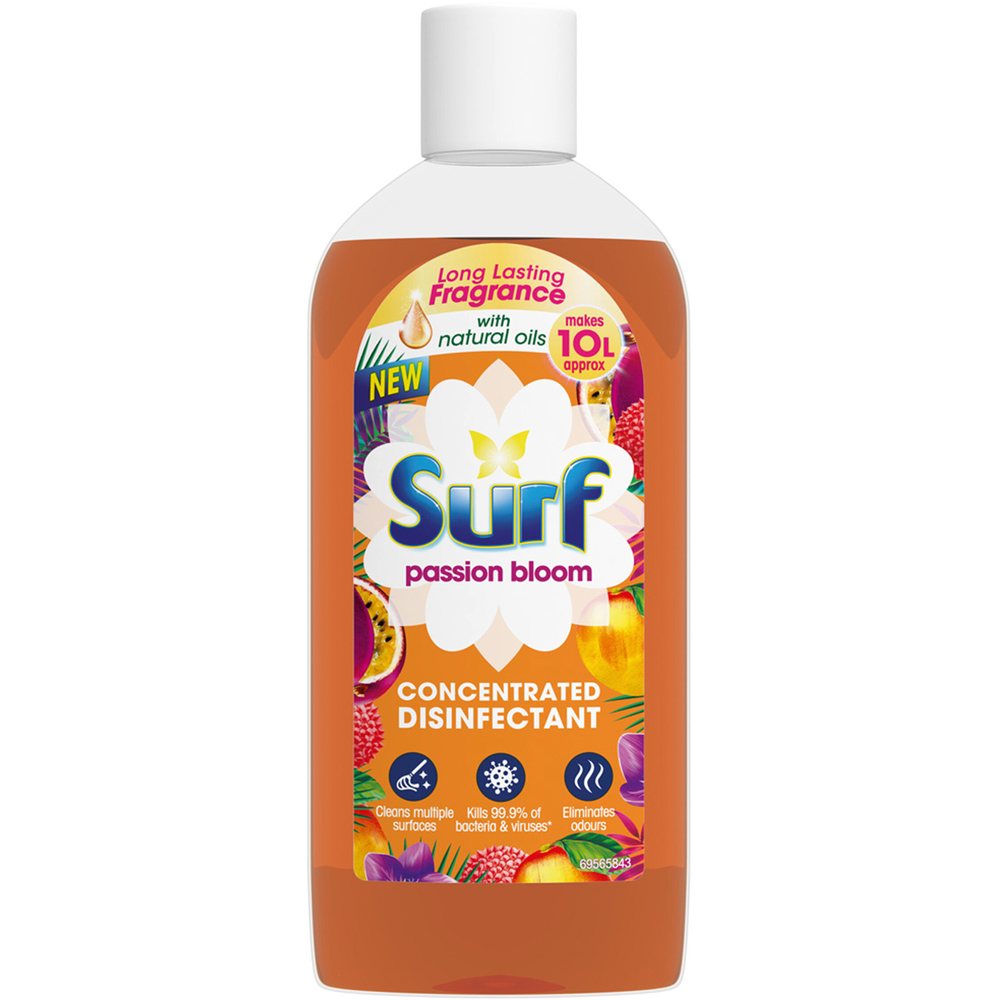 Welcome freshness into your home with the Surf Passion Bloom Concentrated Disinfectant 240ml. Bursting with a bold floral scent, it cleans multiple surfaces, kills 99.9% of bacteria and viruses, and eliminates lingering odours. Just a splash delivers powerful hygiene and long-lasting fragrance, perfect for a beautifully clean and fragrant home.