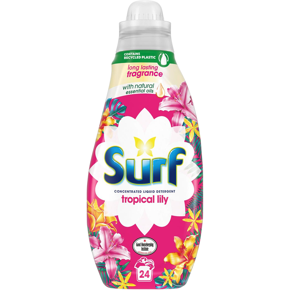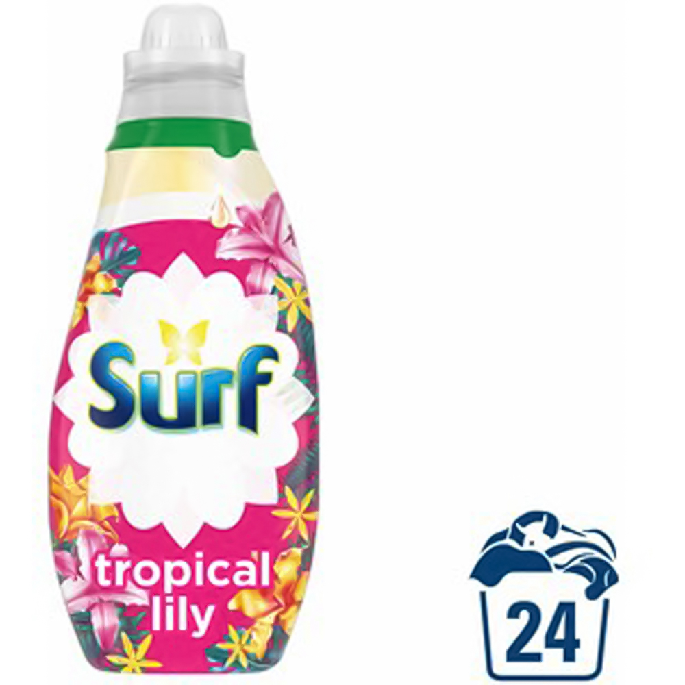 Transform your laundry experience with Surf Tropical Lily Concentrated Liquid Laundry Detergent 24 Washes 648ml. This concentrated formula, enriched with natural oils, delivers a brilliant clean while leaving your sheets and clothing feeling fresh for days. It converts dull laundry days, allowing you to embrace the long-lasting freshness that Surf provides.