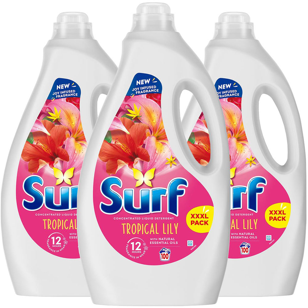 Surf Tropical Lily Laundry Washing Liquid Detergent 100 Washes 2.7L 3 Pack