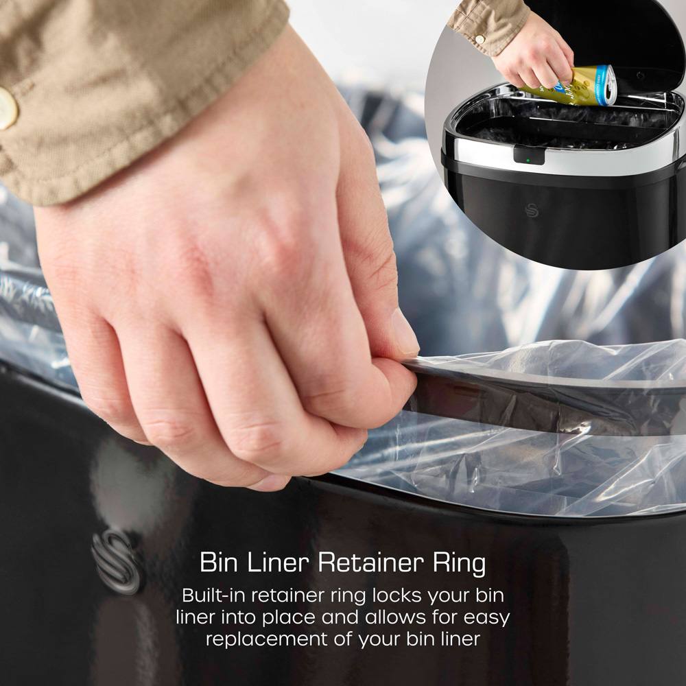 This Swan Townhouse square sensor bin makes waste disposal stylish and simple. Just approach the bin or swipe near the sensor bar and it opens automatically, which is helpful when you have your hands full. The lid closes after five seconds of no activity, providing hands-free and hygienic waste disposal. This motion sensor bin features a big 42L capacity that easily takes large loads of waste, requiring less frequent emptying, It's made from top quality polished stainless steel, complete with a stylish non-corrosive colour coating for long-lasting durability. The specially designed built-in retainer ring locks your bin liner into place around the rim, so can withstand heavier loads without the risk of the bag falling down into the bin. Requires 4 x AA batteries (not included).