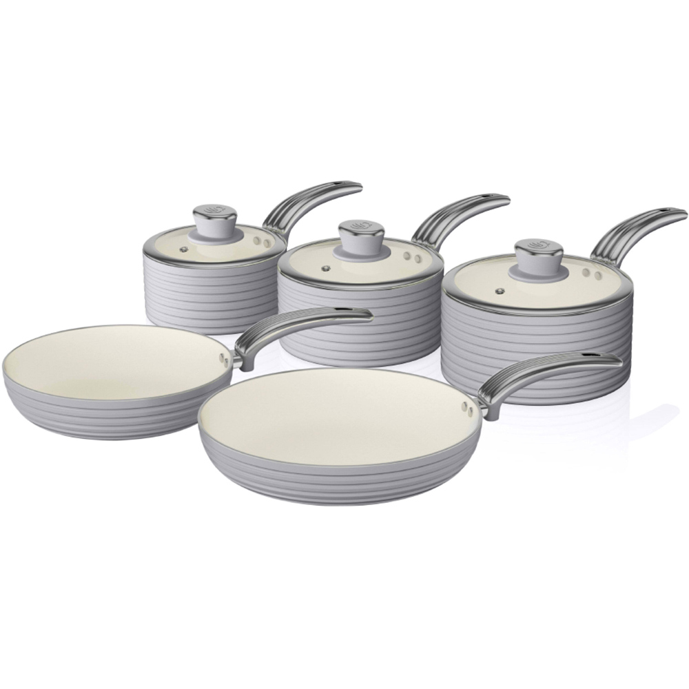 Swan Retro 5 Piece Grey Aluminium Pan Set