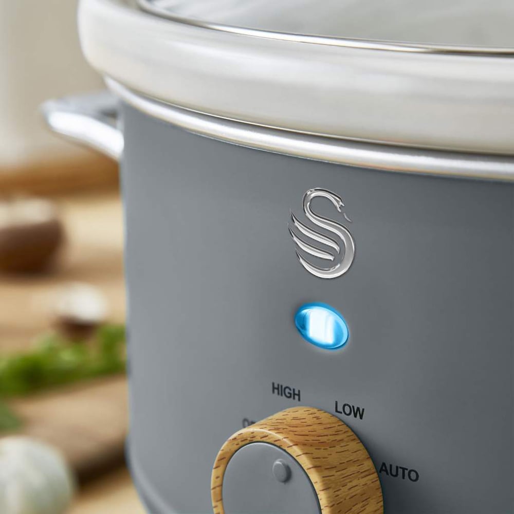 Enjoy tasty and wholesome home-cooked meals with Swan Nordic Grey 3.5L Slow Cooker. This beautiful retro-styled slow cooker not only takes the hassle out of cooking but has three temperature settings that allow you to create delicious, slow-cooked meals packed with flavour.