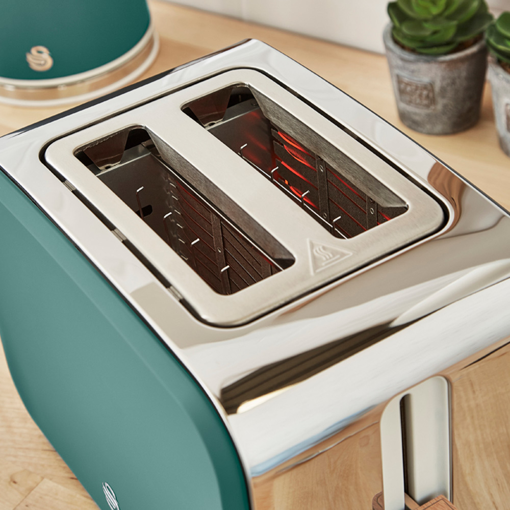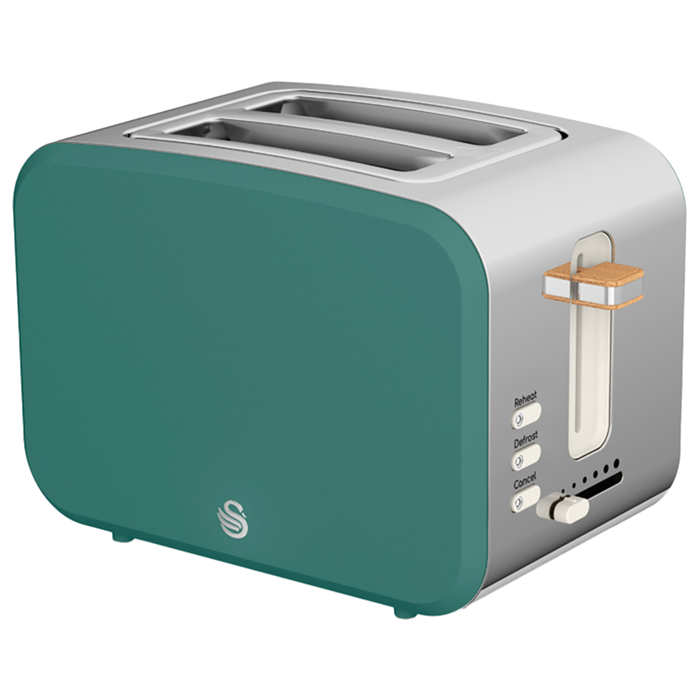 Make toasting bread simpler with this Swan Green 2 Slice Nordic Toaster. With a stylish colour and finish, this toaster makes a perfect addition to any kitchen. Compact in size, it can be easily placed in any corner without much hassle. The toaster comes with reheat, defrost and cancel functions for easy use. Also, it includes a slide-out crumb tray to keep your kitchen countertops mess-free.