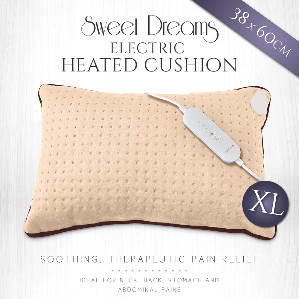 Sweet Dream’s XL heated cushion has been designed with luxurious flannel fleece to make it super soft and comforting. This makes the cushion extremely comfortable and cosy – perfect for helping you keep warm or to ease pain and discomfort. Find the perfect heat setting for you with 4 to choose from. The first heat setting heats up to 30 -35°C, the second heat setting heats up to 35-40°C, the third heat setting heats up to 40-45°C and the fourth heat setting heats up to 45-50°C. Control the heated cushion with ease with the included controller. From here, you can easily switch between the heat settings to make sure the cushion is at your preferred temperature. The controller has LED lights to clearly display which heat setting has been chosen, as well as an on and off button for your convenience! With an extra-large surface area of 60 x 38 x 14cm, you’ll be able to use this heated cushion on larger areas of the body. Heated cushions are scientifically proven to help reduce pain by using topical heat therapy. Heat encourages more blood to flow to the area, and as a result, this helps to relieve pain and discomfort. Keep your heated cushion fresh and clean by detaching the controller and placing it in your washing machine at 30 degrees. This heated cushion has been designed with your safety in mind. With built-in overheat protection, over-current protection and auto cut-off after 90 minutes, you can use the cushion with complete peace of mind.