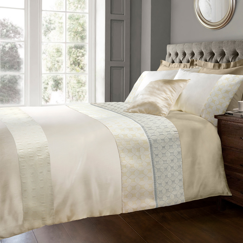 Revamp your bed with the Sweet Dreams Jacquard Pandora Cream Bedspread Set. The design is classic and plush, with gentle geometric patterns on a smooth cream background. The pillow shams match the theme, Crafted from high-quality faux silk and polycotton blend, this cream bedspread set is a must-have for your bedding collection. Each set comes with one pillowcase for single size and two for double, king, and super king sizes, ensuring a complete bedding solution. Plus, it's super easy to care for - just toss it in the washing machine. It keeps its vibrant colours and softness wash after wash.