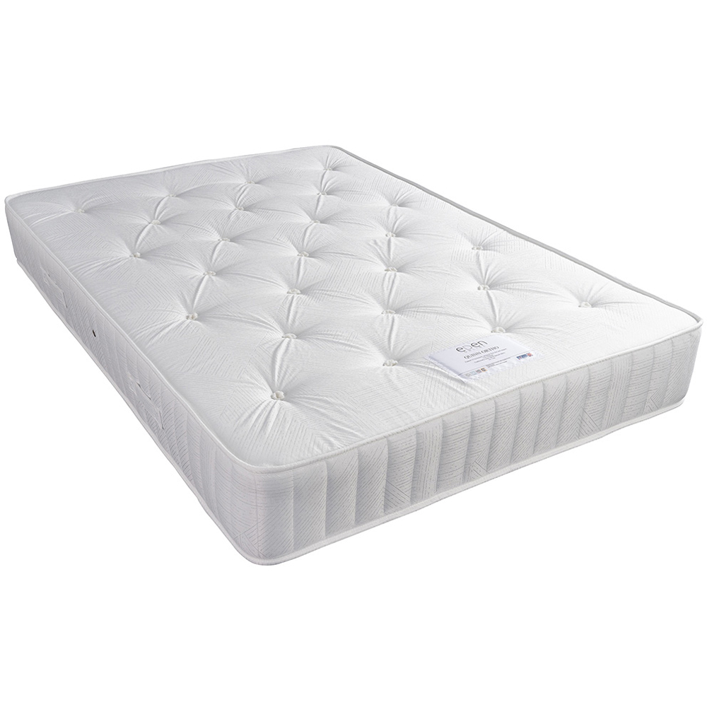 Traditional super king size hand tufted damask mattress with a firm open coil spring system for a firmer feel and support with a vertical damask border. Single sided, rotate regularly.