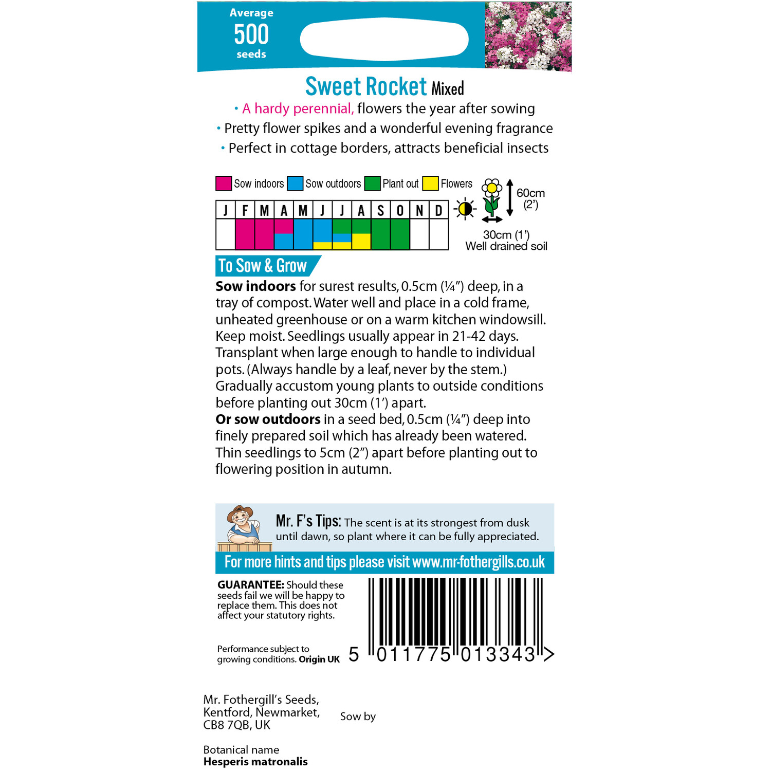 Sweet Rocket Mixed is a Loose mauve and white flower which produces a lovely evening fragrance. A classic cottage garden variety, this plant will prove easy to grow.