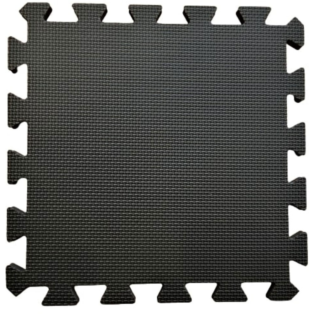 The Warm Floor Interlocking Floor Tile from Swift Foundation is an ideal floor tiling kit for garden buildings, suitable for use in playhouses, sheds, cabins and workshops. This kit provides a warm and comfortable surface to stand, work or play. Finished in black, the tile features a woven effect top surface and smooth underside to provide insulation and an anti-fatigue floor covering for sheds and workshops. The tile is made from tough ethylene vinyl acetate EVA foam making them slip-resistant, tear-resistant, and impact-resistant while offering good insulation against heat loss as well as compression recovery. Each tile measures 300 x 300 x 12mm thick and comes complete with detachable edging strips and a straight edge to help with trimming tiles to fit. Non-toxic, the tile does not include heavy metals, phenols, chlorides, latex or ammonia, and meets BS EN 7188 slip resistance classification and fire classification BFL-S1. Compliant with EN71-1, EN71-2 and EN71-3. Size: 10 x 7ft.