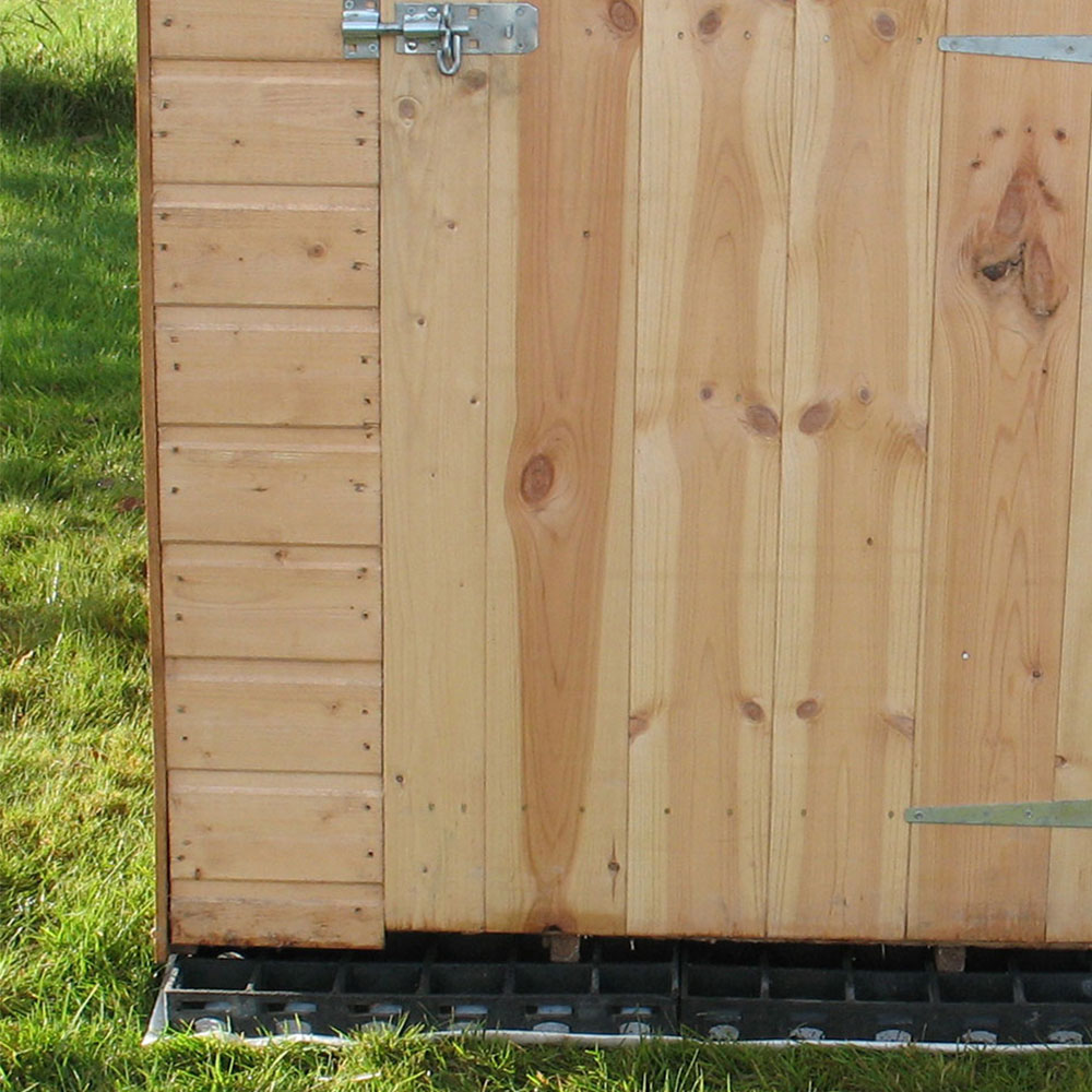 An Ecobase Fastfit Shed Base kit is designed to provide a firm, long-lasting base for a garden building. Each kit comprises heavy-duty plastic grids with connectors that click together and a sheet of weed-resistant membrane to stop weeds from growing into the floor. The kit is lightweight and simple to install, following the instructions provided. It is a lot lighter and easier to handle than paving flags and less messy and much quicker than laying a wet-mix concrete slab. The shed base kit is suitable for most garden buildings, sheds, and summer houses etc. Although gravel is not needed in the entire base, optionally, it can be used around the perimeter to create a French drain. Size: 9 x 8ft.