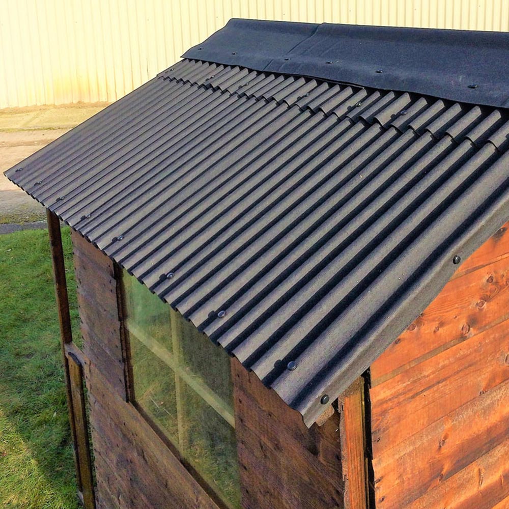 The Swift Foundations Watershed Roofing Kit consists of corrugated roofing tiles, each one made from bituminous material 3mm thick and formed into the classic corrugated shape of a series of ridges and valleys. With tiles supplied already cut to size, installation is rapid since there is no measuring or cutting to do as there is with roofing felt. The tiles easily overlap each other both lengthways and widthways creating a simple but very effective watertight seal. The rainwater is channelled down into the valleys of the tiles and then down the slope to the eaves or gutters, keeping the roof of the shed snug and dry. Each kit comes complete with everything you need to re-roof your building including roof tiles, ridge tiles, timber battens, screws, screw caps and instructions. Suitable for use on pent or apex roofs with a pitch of 10 degrees or greater on sheds, summerhouses, workshops, garages, playhouses, log cabins, lodges, bike stores, shelters, beach huts, logs stores etc. Size: 10 x 16ft.