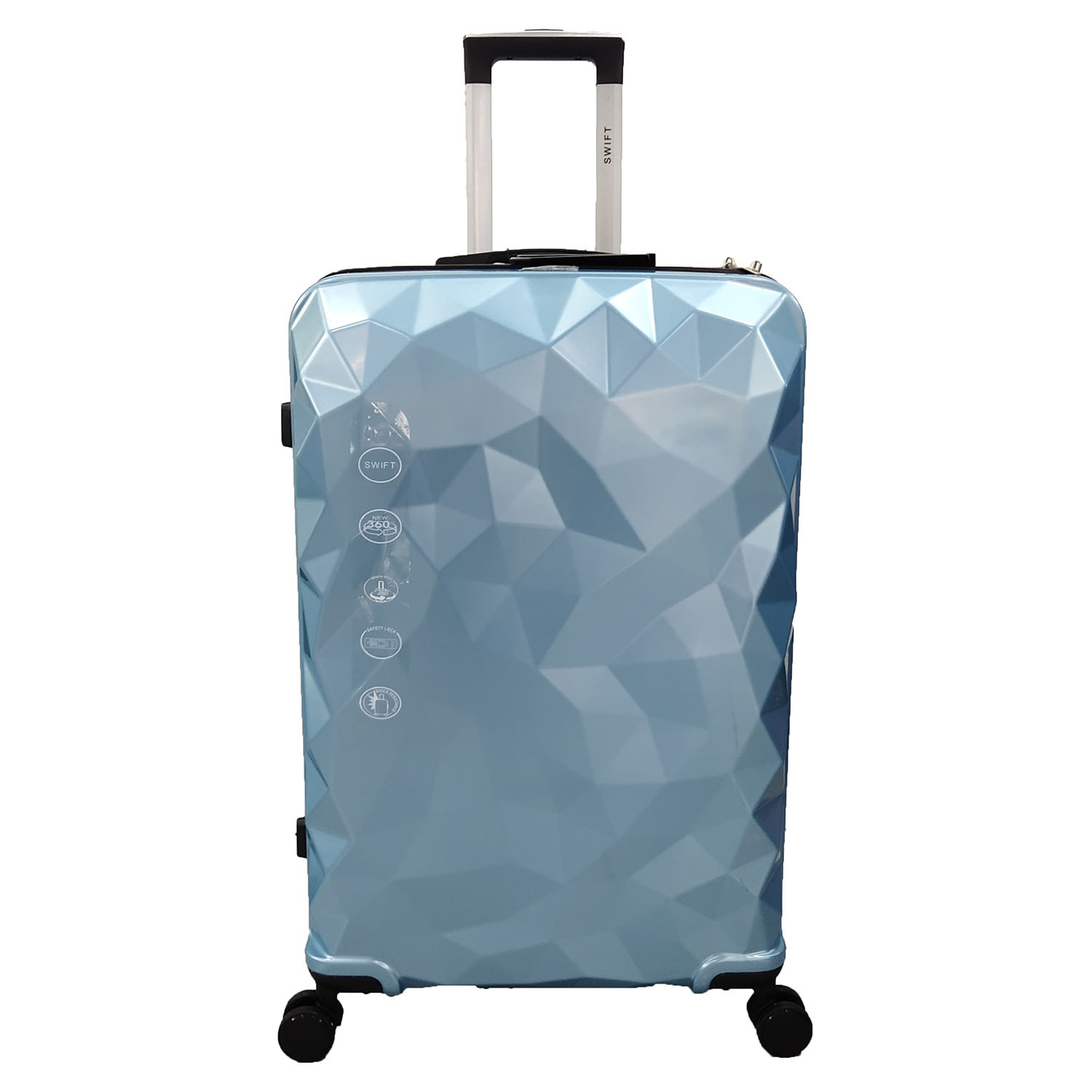 Stylish and classy, this Swift Glitz Suitcase is an essential travel accessory for individuals who don't want to compromise on style. Say goodbye to dull, old-fashioned suitcases and embrace this modern and trendy travel gear. Featuring a striking ice-blue design, this suitcase is guaranteed to turn heads wherever you travel. Easy to use, you can effortlessly navigate it with the easy-gliding wheel system and adjustable handle.