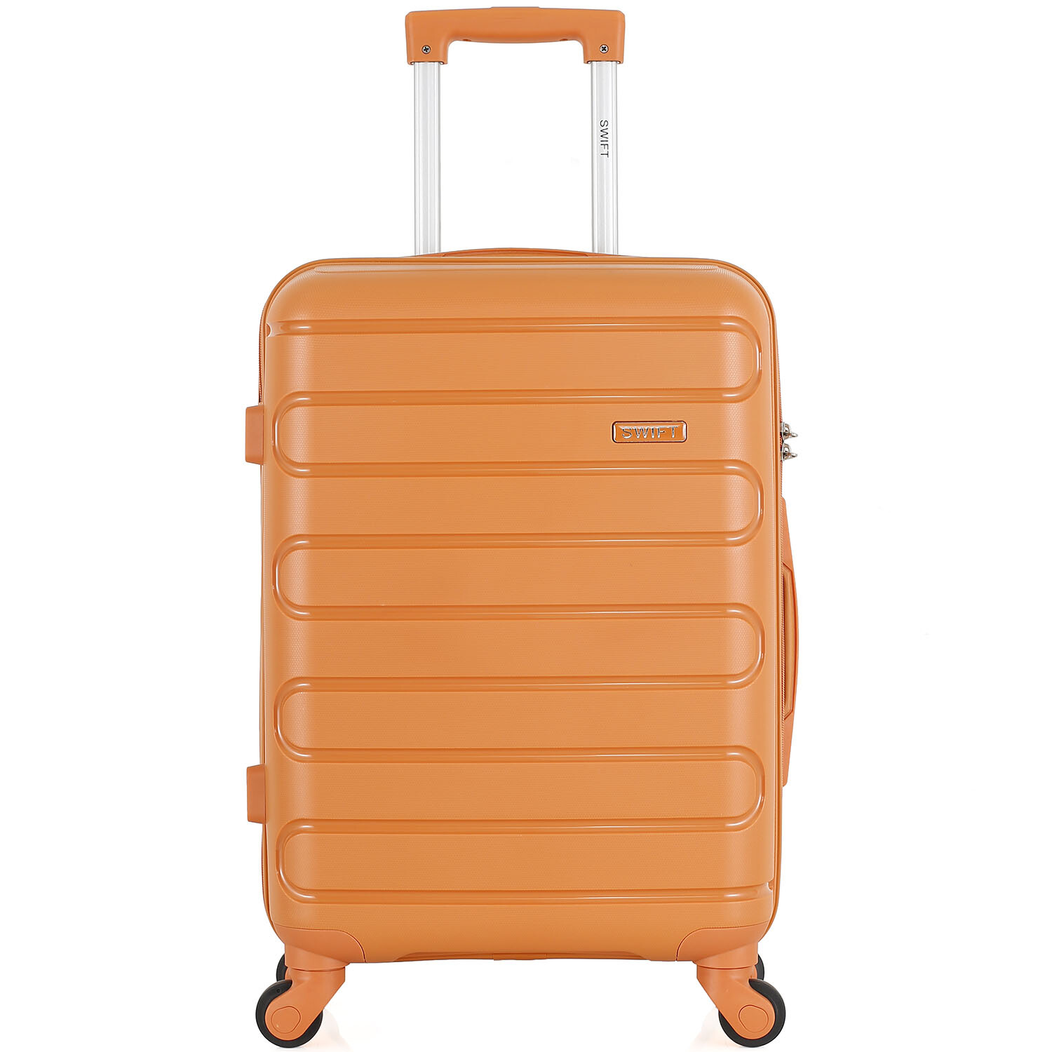 Introducing the Swift Horizon Suitcase, the ultimate travel companion for those who never compromise on style. With its bold and unique design available in blue or white, this suitcase is the perfect choice for those who want to make a statement wherever they go. The easy-gliding wheel system and adjustable handle ensure effortless navigation through busy airports, while the durable plastic construction guarantees long-lasting performance.