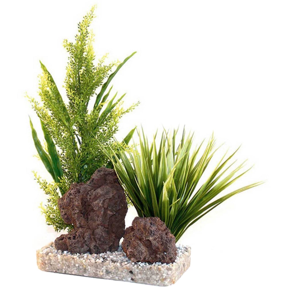 Beautifully swayed by water currents, these gorgeous plants adorned with natural looking rocks will truly bring your tank to life.