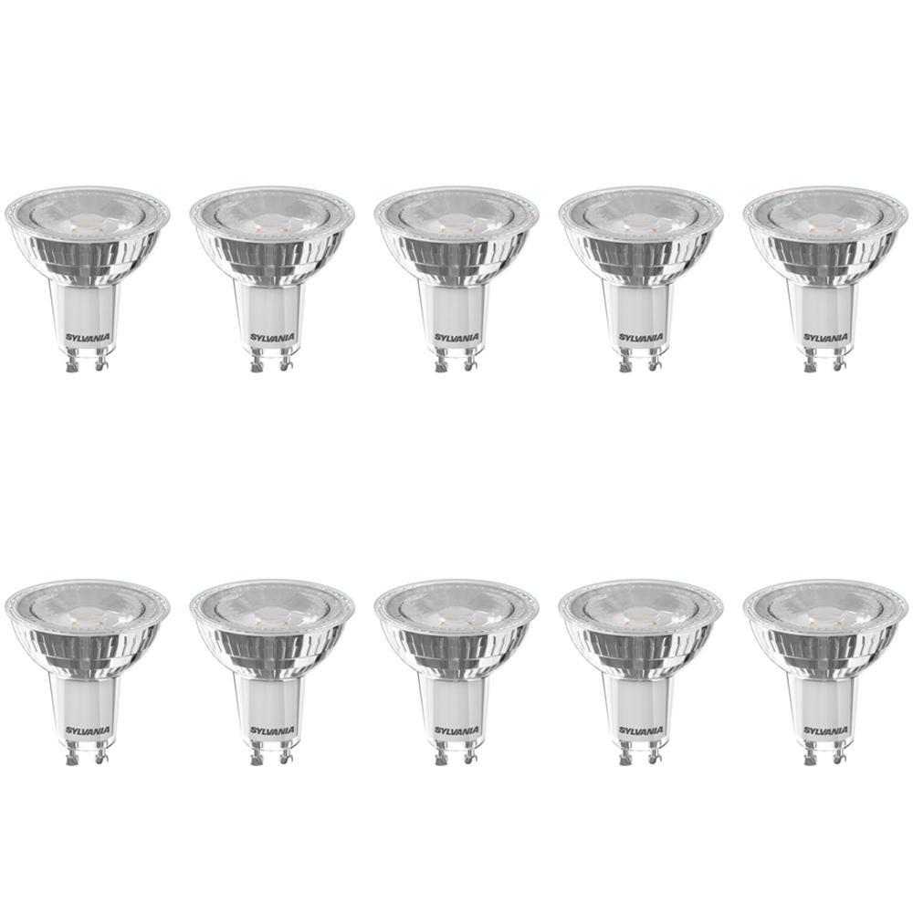 Upgrade your lighting with the Sylvania RefLED Superia Retro LED Bulb. This pack of 10 bulbs offers premium performance with the same look and feel of traditional halogen GU10 lamps, making it a perfect choice for any space. These bulbs recreate the backlight effect similar to halogen dichroic lamps, providing a warm and inviting atmosphere. The full glass design ensures no colour clashing between the lamp and fixture, maintaining a sleek and cohesive look. With a very long lifetime of up to 25,000 hours, you’ll enjoy lower maintenance costs and fewer replacements.