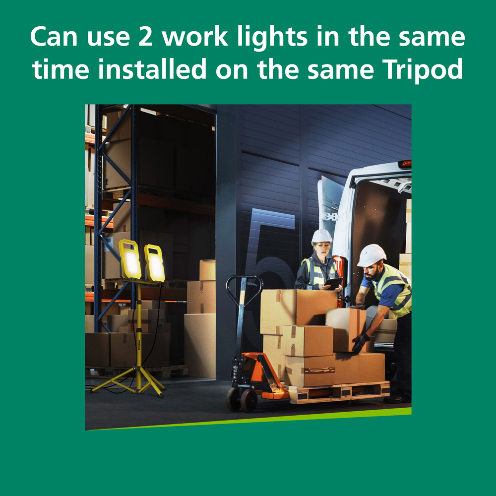 Brighten up your workspace effortlessly. The Sylvania SylWork Neutral White 50W Floodlight is the perfect solution for all your lighting needs, whether you're working indoors or outdoors. This slim, stylish, and robust LED work light features a high-quality plastic body and flexible positioning options, ensuring you get the light exactly where you need it. With a cool white 4000K light and a total system efficacy of up to 111lm/W, this floodlight provides clear, bright illumination for any task. Its lightweight and space-saving design make it easy to transport and store, while the option to use two work lights simultaneously on the same tripod adds versatility. Plus, with a three-year warranty and a lifetime of 30,000 hours, you can rely on its durability and performance.