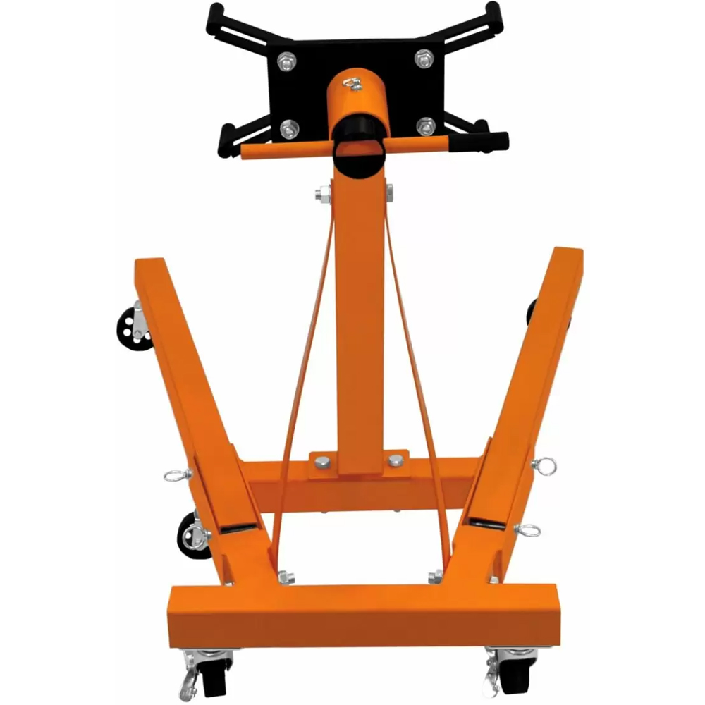 Repair engines and gearboxes effortlessly with this folding engine stand. Made from robust steel it's built to last and can support up to 900kg weight. Its sturdy design offers stability and allows you to work safely without any worries. This engine stand also features a foldable design to help you move it around with ease, and the swivel head offers you access to various parts of the engine.