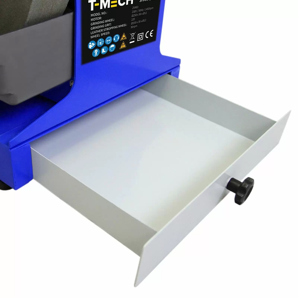 Create sharp and refined edges with this wet sharpener. It uses an abrasive wheel and water-cooling system to sharpen various tools like knives and axes, while the angle guide and grinding jig help you work with ease. The sharpener comes with oil stone to sharpen the blade and metal polish to give your tools a finishing touch. This wet sharpener can help bring your old tools back to life so you can use them again.
