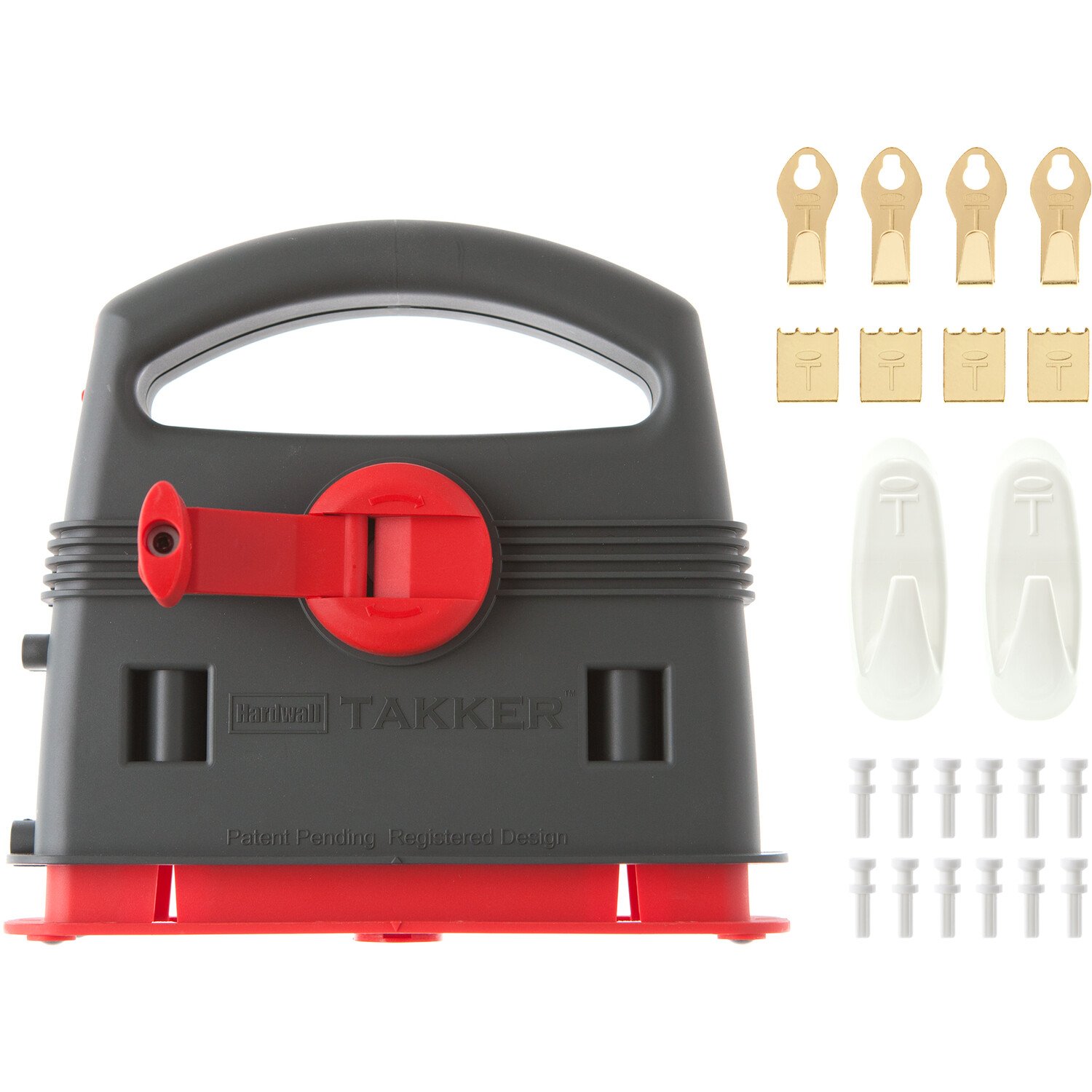 The 35 Piece Takker Hardwall Hanging Kit is an all-in-one kit that makes hanging picture frames, mirrors and other items to the wall easy. This lightweight manual tool creates a 3mm wide hole into any hard wall surface, such as concrete, brick, plaster, and even ceramic tiles. Great for people just getting into DIY, this set includes one Hardwall Takker, 48 Takks, four picture hooks, four canvas print hangers, two medium multi-purpose hooks, and two small multi-purpose hooks.