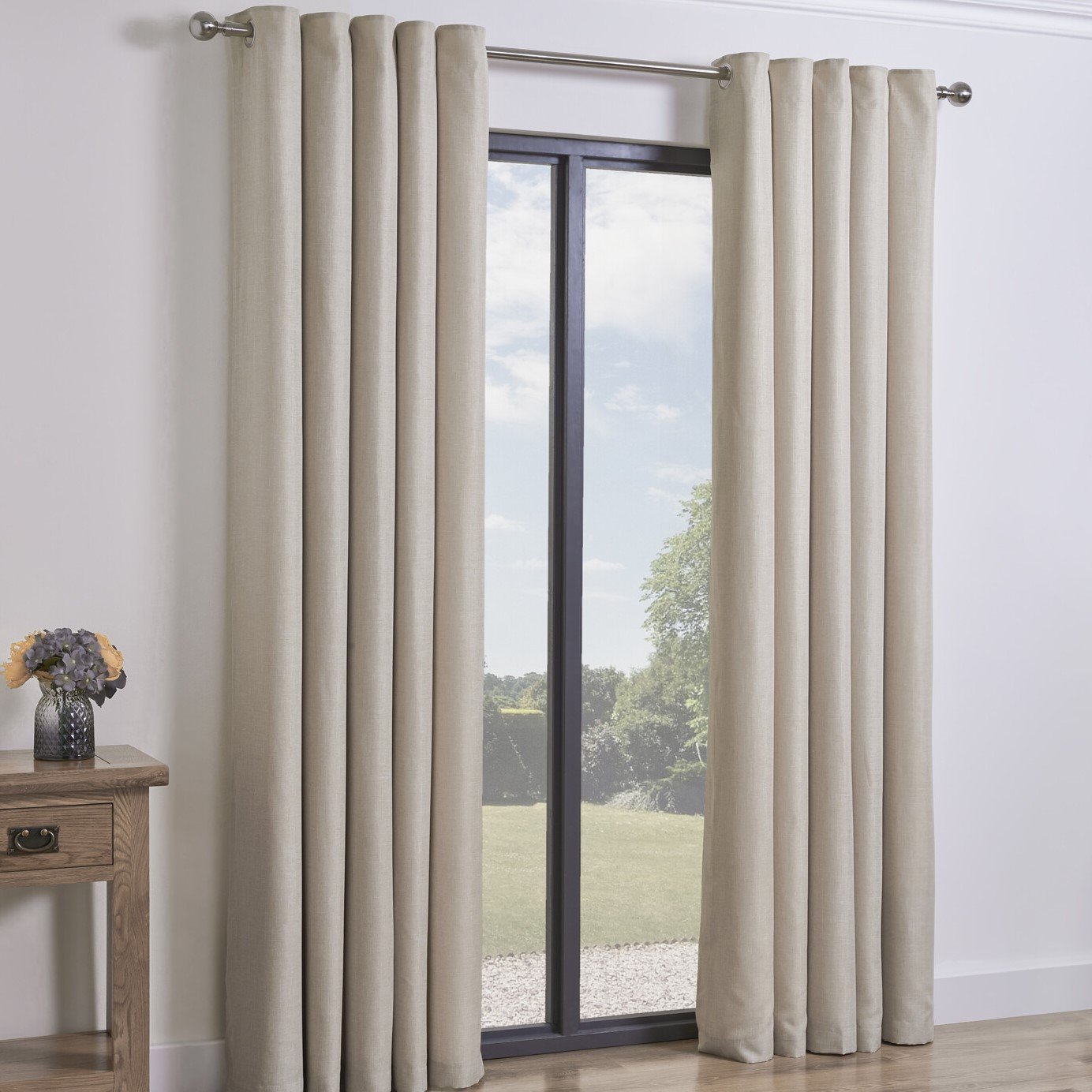 Fashioned from thick, textured fabric, the Taylor Blackout Eyelet Curtains are a modern and effective way to block out light from your living space or bedroom. Hanging in sleek, loose waves from easy-to-hang eyelets, these curtains are presented in a modern grey tone and will effortlessly lend themselves to any surrounding decor, helping you get a great night's sleep.
