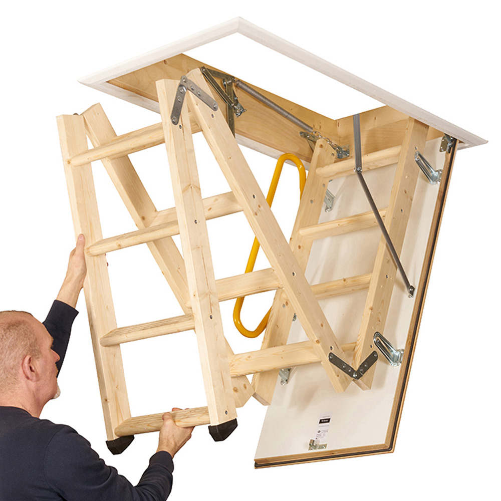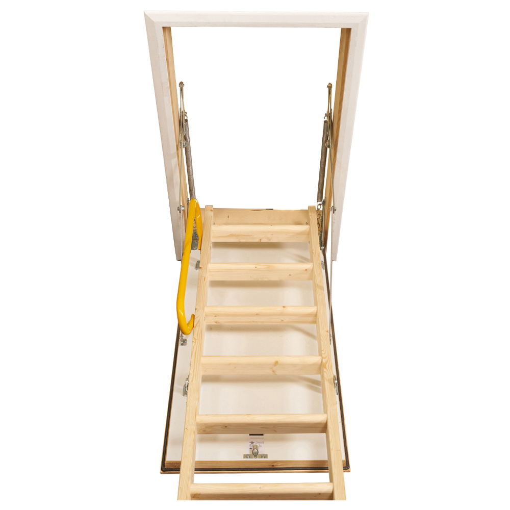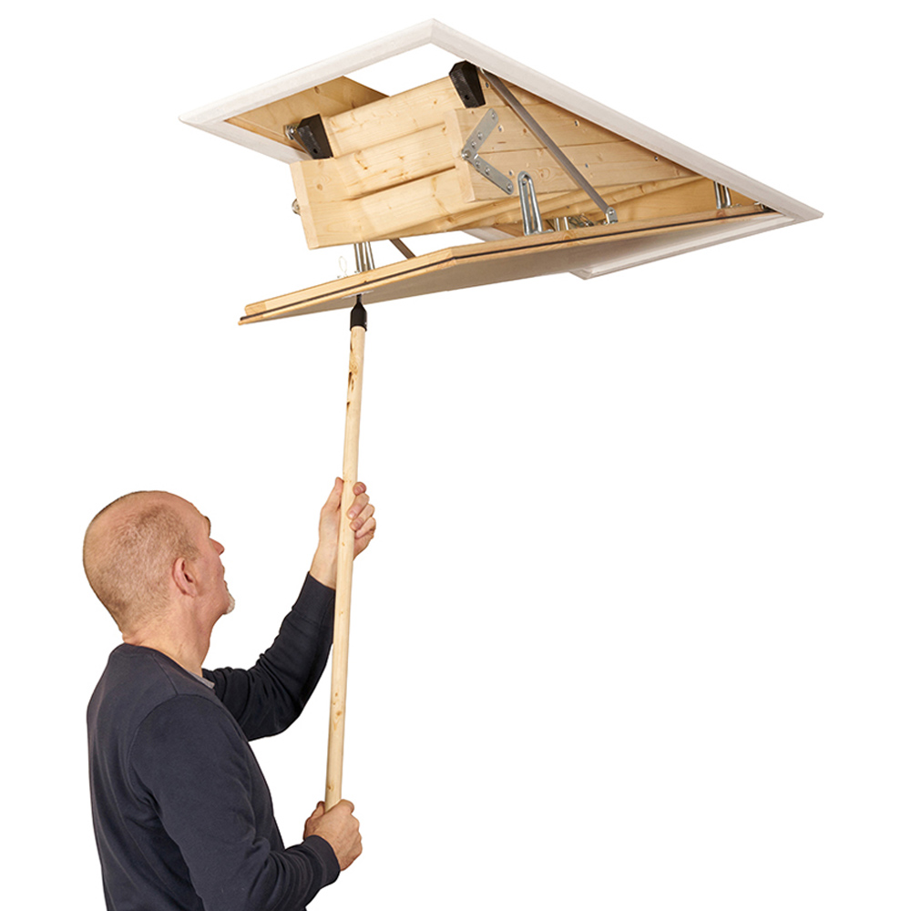 Complete your DIY tasks easily with this TB Davies EnviroFold Timber Loft Ladder. This fantastic ladder is the contractor’s choice for its quick installation and snug fit between standard UK joists. Its thickly insulated trapdoor is finished in white and spring-balanced for smooth operation. With an innocuous design, the ladder takes up no space in the attic and is suitable for ceiling heights up to 2.8m. To ensure safety, a continuous seal wraps around the entire frame to offer protection from cold draughts blowing from the loft into your warm home. Apart from this, the seal and thick wooden frame, together with a 33mm thick trapdoor, achieve a tested U-value of 1.11 W/m²K. For added convenience, the deep anti-slip treads are dovetailed into the stiles using traditional means for maximum comfort. Easy to assemble, the quick installation kit comes complete with angled feet, a handrail for added security, and an operating pole and hook. The timber materials used are certified PEFC and come from sustainably managed forests, recycled materials, and controlled sources [PEFC 16-37-2313]. Additionally, the tool is manufactured in Europe’s Clean Tech Valley using renewable energy.