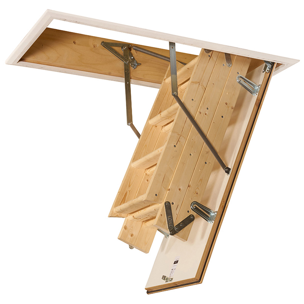 Complete your daily fixing tasks easily with this TB Davies EuroFold Timber Loft Ladder. Easy to open and quick to close, this is a superior quality loft ladder that helps you get more from your living space. Putting away suitcases or storing your items has never been easier. Also, this ladder fits between standard UK roof joists, making installation quick and straightforward. To ensure safety, a continuous seal wraps around the entire frame to offer protection from cold draughts blowing from the loft into your warm home. Apart from this, the seal and thick wooden frame, together with a 33mm thick trapdoor, achieve a tested U-value of 1.11 W/m²K. Its strong and durable frame is manufactured from 18-mm engineered timber to improve the insulation properties and give a secure fit. The ladder comes with all the necessary components for installation, including fixings and screws. Additionally, this kit is made complete with a loft pole to enable easy opening suitable for ceilings up to 2.8m.