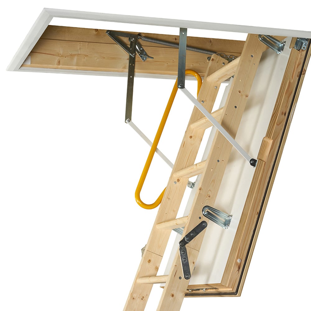 Make a practical addition to your home with this TB Davies LuxFold Timer Loft Ladder. This is a luxurious, easy-to-use loft ladder built to deliver the highest thermal efficiency to help keep your home warm and your bills down. The innovative design and generous proportions allow comfortable and stylish access to your loft. This ladder comes with an 87mm extra-thick trapdoor, is finished in white to suit your decor, and is tested to a U-value of 0.59 W/m²K for high insulation performance. Also, the integrated double-lock system sets new standards in user convenience, ensuring fingertip control, exceptional ease of opening, and secure closing. The ladder is fully assembled and housed in a deep, solid spruce frame with angled feet, a handrail for added security, and a hexagonal operating pole.