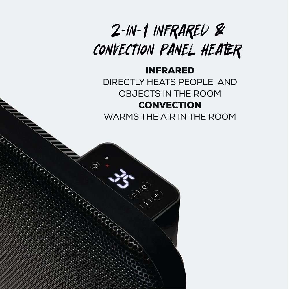 The TCP 2000W 2-in-1 Infrared Convection Aluminium Heater is a high-performance heating solution that combines infrared and convection technology for fast, efficient warmth. Designed with a sleek aluminium finish and advanced heating element, it adds modern style while keeping your space cozy and comfortable. This innovative heater offers three heating modes, a 7-day programmable schedule, and a 24-hour timer, letting you tailor warmth to your lifestyle while improving energy efficiency. The built-in electronic thermostat and window detection function help maintain consistent temperatures and reduce energy waste. Safe and versatile, it features overheat protection, comes with fittings for wall or freestanding setup, and is backed by a 3-year guarantee. Ideal for both home and office, it delivers effective, silent heating without compromising on design.