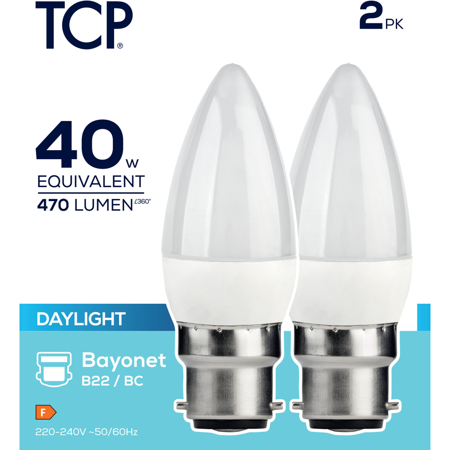 Replace old incandescent bulbs with the TCP LED Candle 470L B22 Bulbs. They are powered by LED technology, offering a more energy-efficient lighting solution for you. These bulbs feature a B22 screw for easy installation and provide up to 470 lumens, promising to brighten any space instantly.