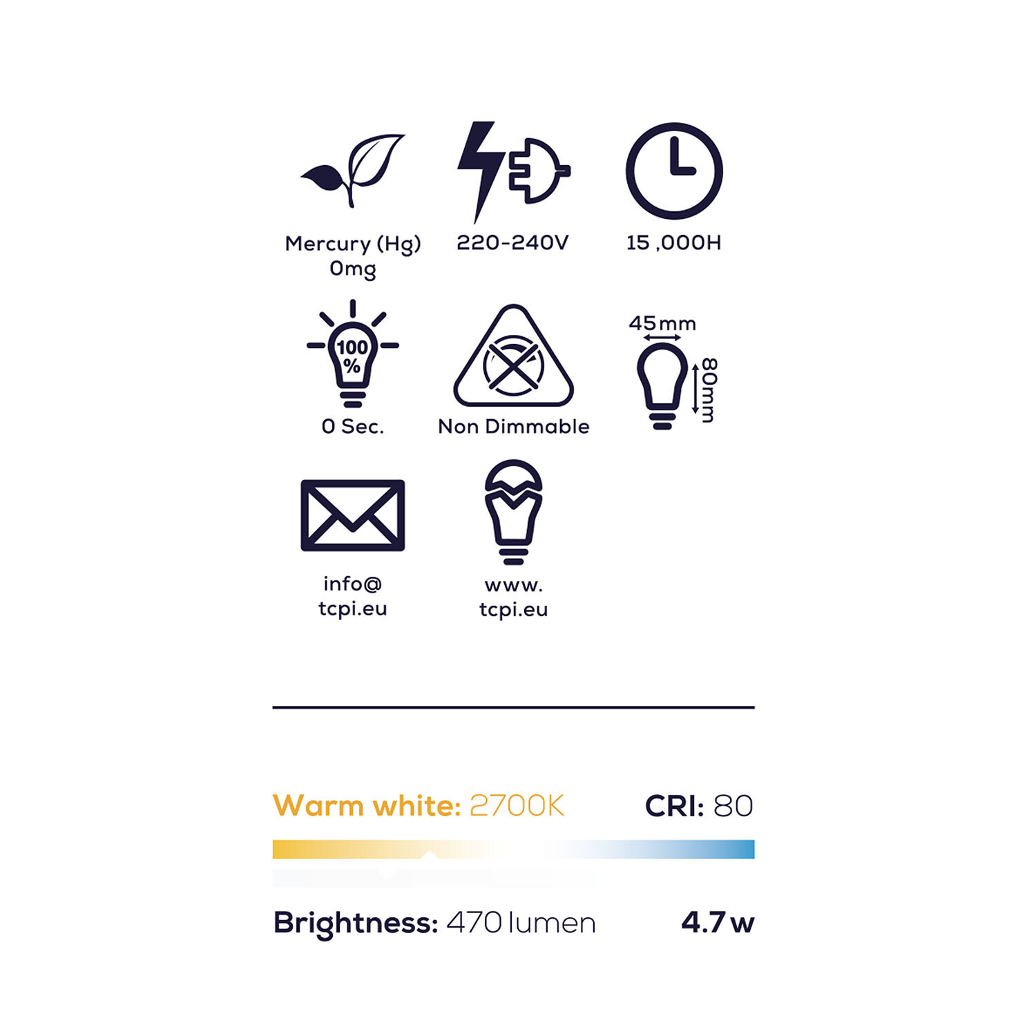 The TCP LED Mini Globe 470L B22 Bulbs are fantastic lighting solutions designed to provide a warm white glow. These non-dimmable bulbs offer a 470-lumen brightness, perfect for creating a cosy and inviting atmosphere in various indoor settings. With a B22 bayonet cap fitting, they are easy to install in compatible light fixtures. Ideal for use in living rooms, bedrooms, or hallways, these mini globe bulbs provide long-lasting illumination.