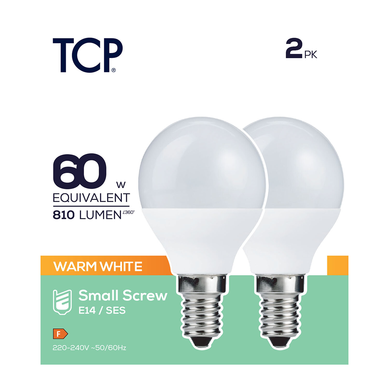 The TCP LED MiniGlobe 810L E14 Warm White Bulbs provide a convenient lighting option with a compact globe design. They emit a soft, warm white light, ideal for creating a comfortable and relaxing ambience in your home. Featuring a small Edison screw fitting, these bulbs are easy to install into standard light fixtures, offering versatility for various lighting applications.
