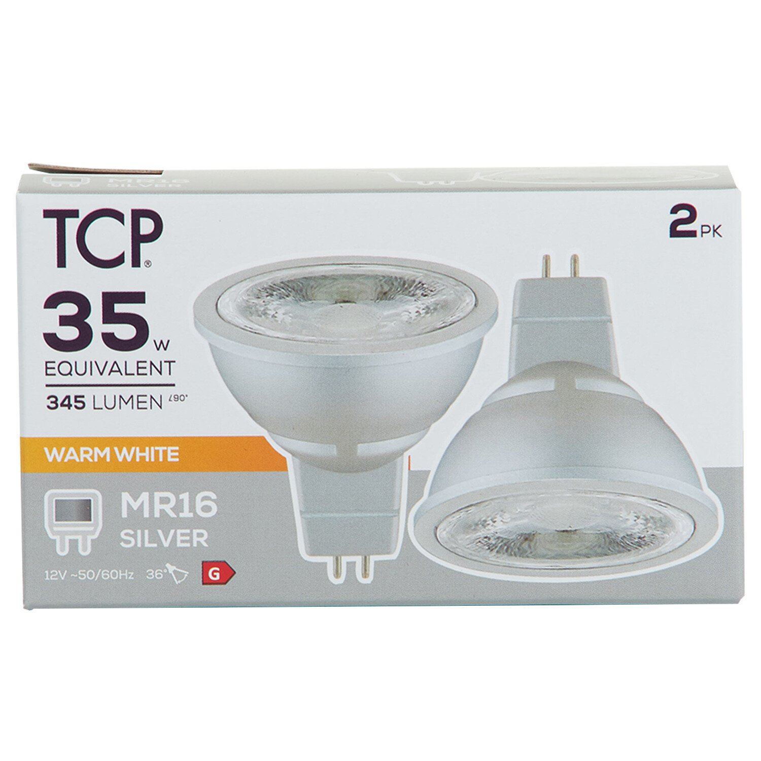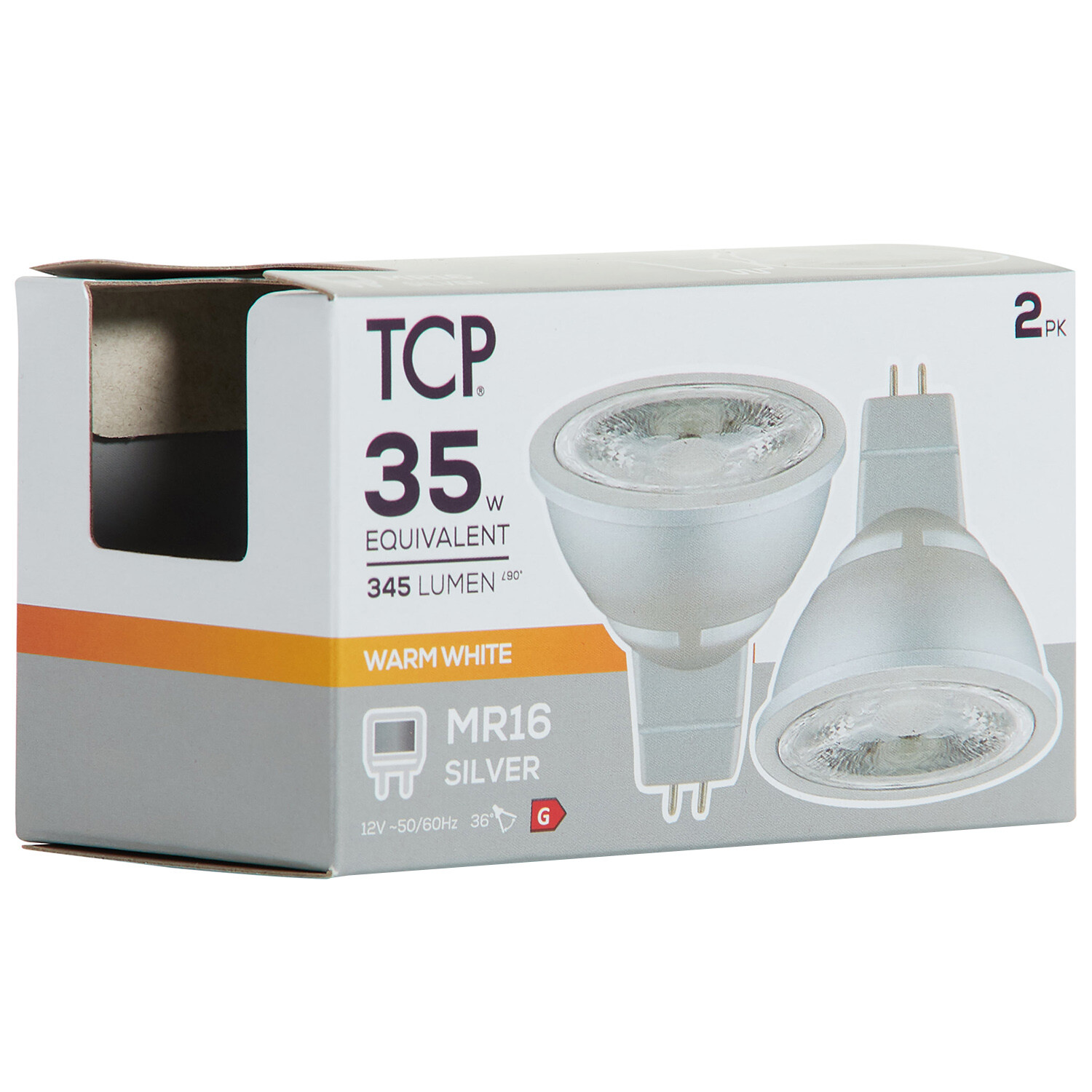The TCP LED Silver MR16 345L Warm White Bulbs are a sleek and efficient alternative to traditional halogen lighting. Ideal for spotlights and downlights, they emit a warm white light that adds a cosy and welcoming atmosphere to your kitchen, bathroom, or hallway. These bulbs are perfect for creating a comfortable ambience, making them an excellent choice for enhancing your space.