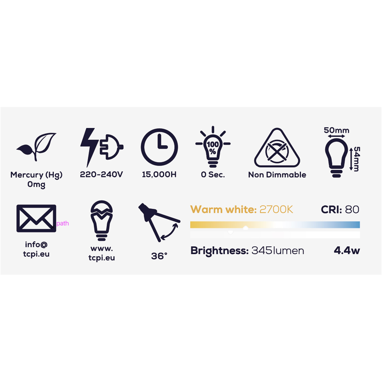 Brighten your home with this TCP LED White GU10 345L Bulbs. These bulbs provide instant illumination making them ideal for accent fixtures, spotlights and more. With a standard GU10 fitting, they are easy to install and perfect for all spaces.