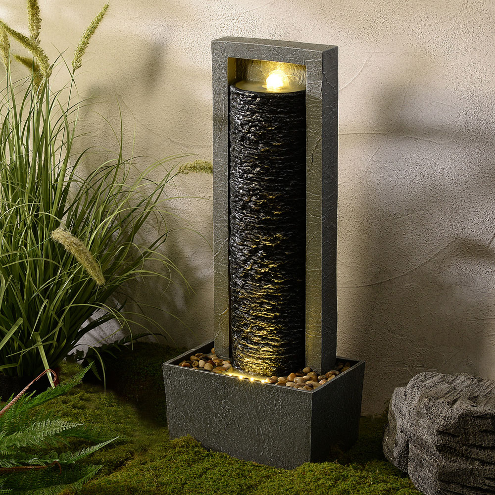 Bring calm and style to your garden with a framed column water feature that combines soothing water flow and warm LED lighting, all in a sleek dark grey finish. Crafted from weather-resistant polyresin, it stands tall yet compact at thirty-two inches, making it ideal for patios, entryways or garden corners. Plug in for a steady stream that masks unwanted noise and transforms your outdoor space into a relaxing retreat—no tricky installation needed, just instant ambience and lasting appeal.