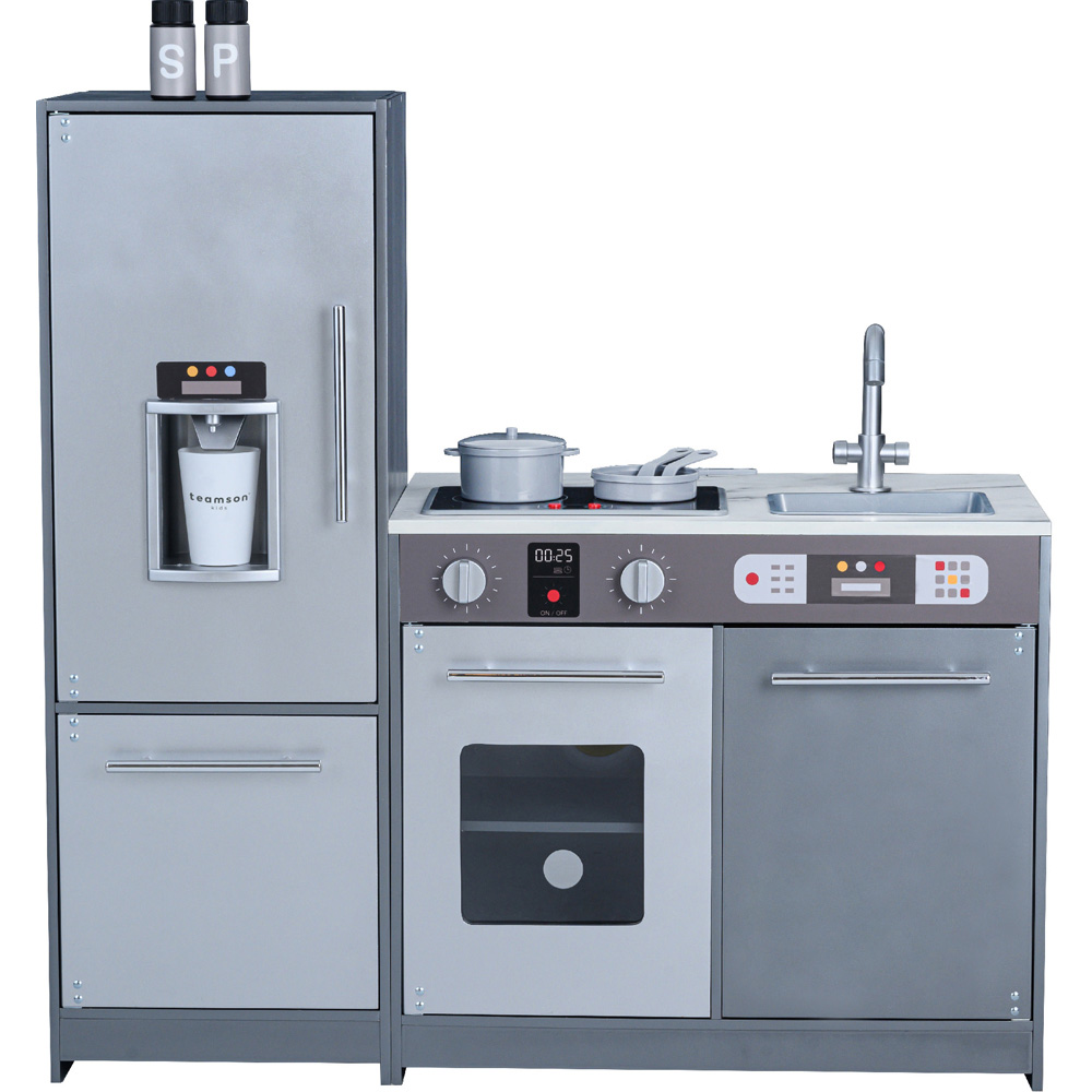 Spark imagination and inspire hours of creative role play with a grey modern play kitchen featuring realistic details designed just for kids. Little chefs can open the oven and dishwasher doors, turn the oven knobs, and enjoy induction burners that glow red and make lifelike cooking sounds, all while exploring a classic retro look with metallic accents. With ten fun accessories including pots, pans, utensils, and ice cubes, children can cook up endless stories and adventures. Durable eco-friendly construction ensures it's safe and easy to clean, and its compact size makes it perfect for any playroom, classroom, or daycare. Quick assembly means the fun starts in no time, making it an ideal children’s interactive kitchen set with storage compartments for young cooks.